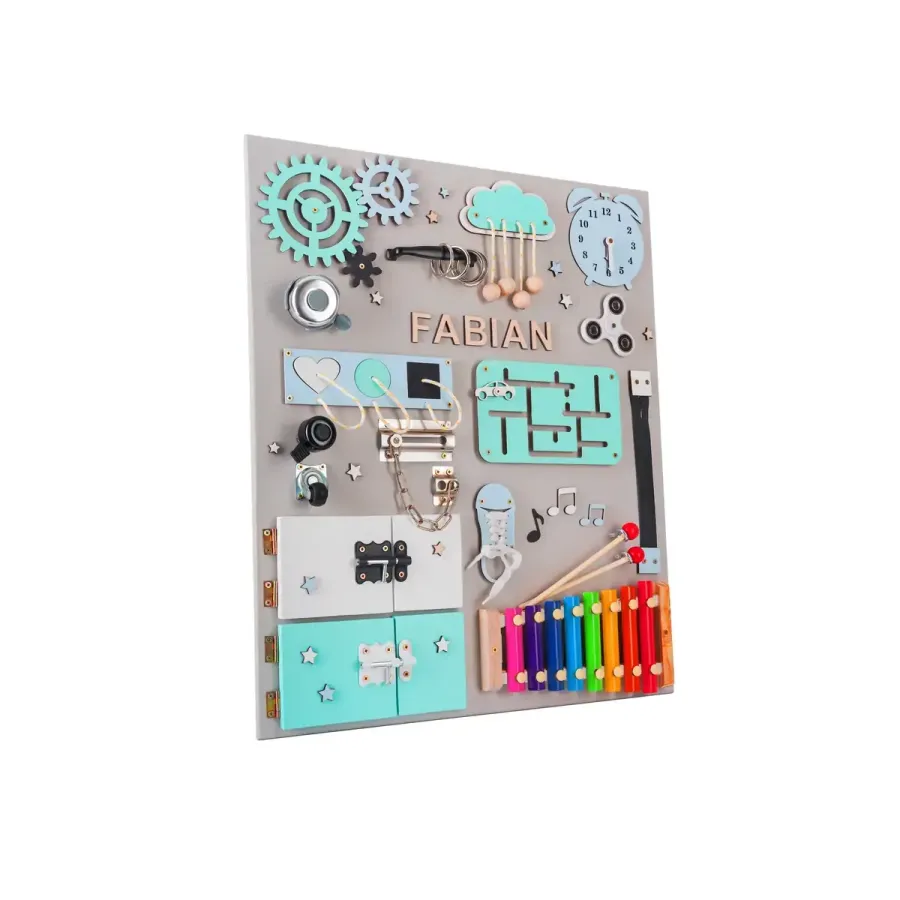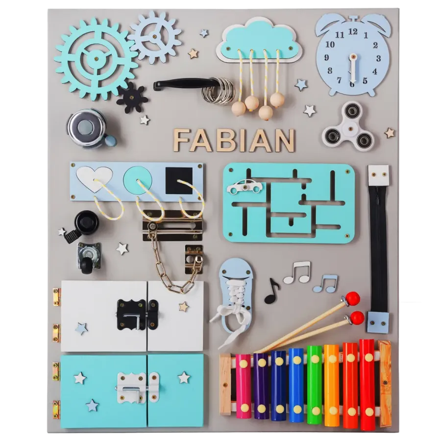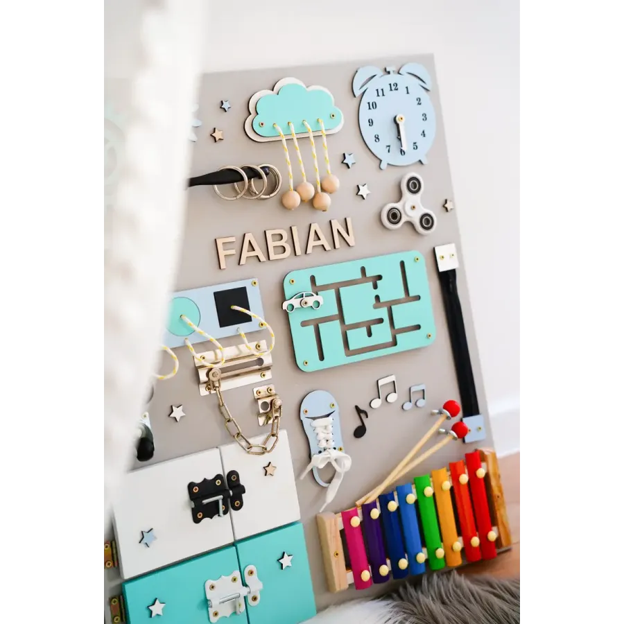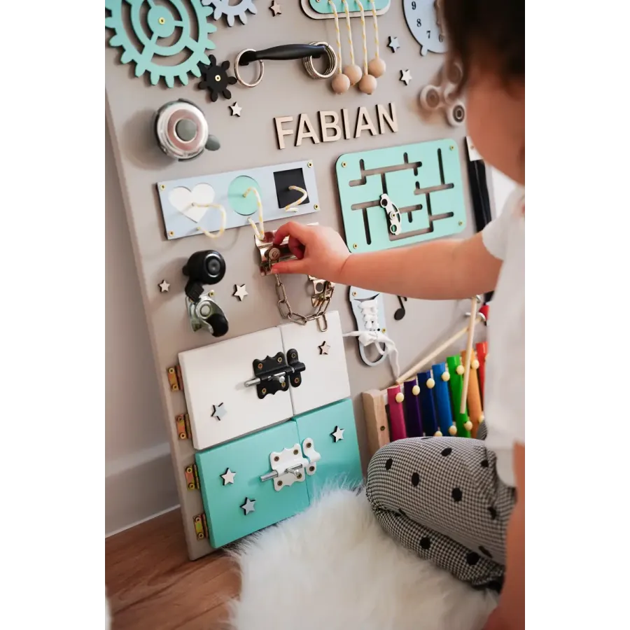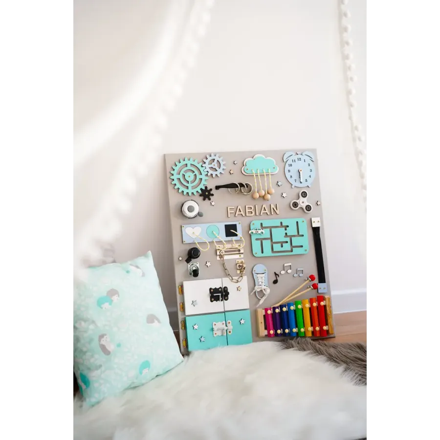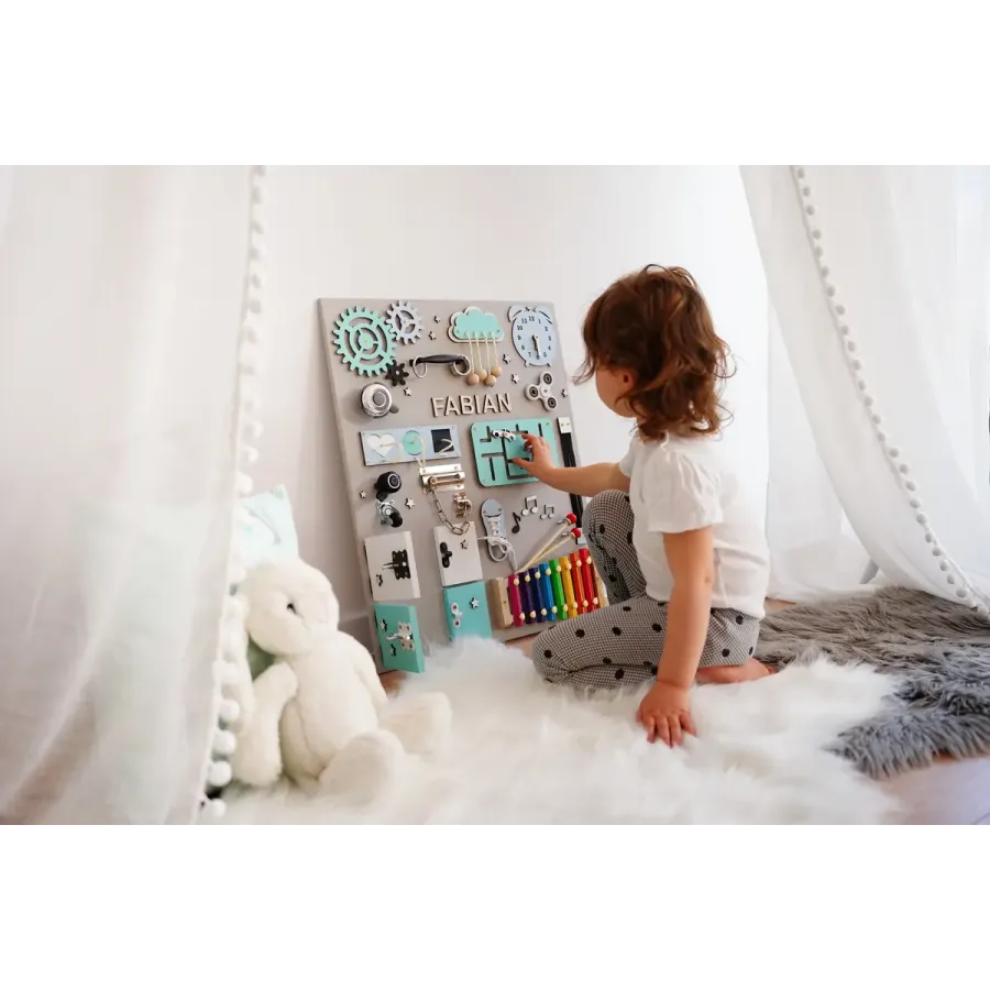 Sensorische Montessori-Aktivitätstafel XL - mit Wunschnamen GRATIS